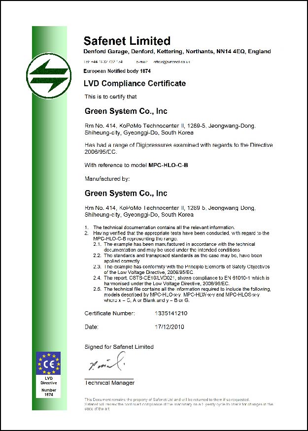 CSTC-CE10_LVD019-GREEN SYSTEM CO.INC (MPC-HLO-B)