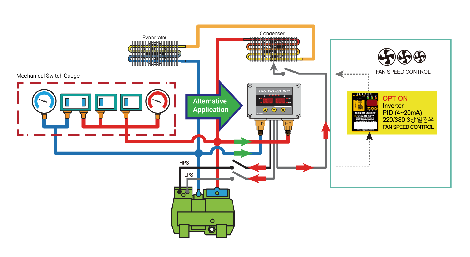 | Current output application (Option) | 4-20mA | Refrigerant Gas Selection | Refrigerants other than (R22, 23, 134, 410, 404, 407, 507 refrigerant temperature conversion function applied) can be ordered. |