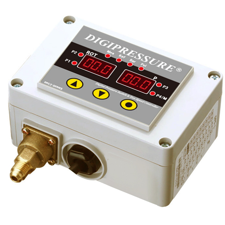 압력센서 1점 - 밀폐형 스크류 스크롤형 냉동기 제어 - 출력접점 4점 - 저압 ON/OFF 지연타이머 내장 - 교번 제어 - 설정압력값 0.1 kgf/㎠ 단위로 입력 가능 - 압력단위 (kgf/㎠, Mpa, Bar, Psi) 설정가능